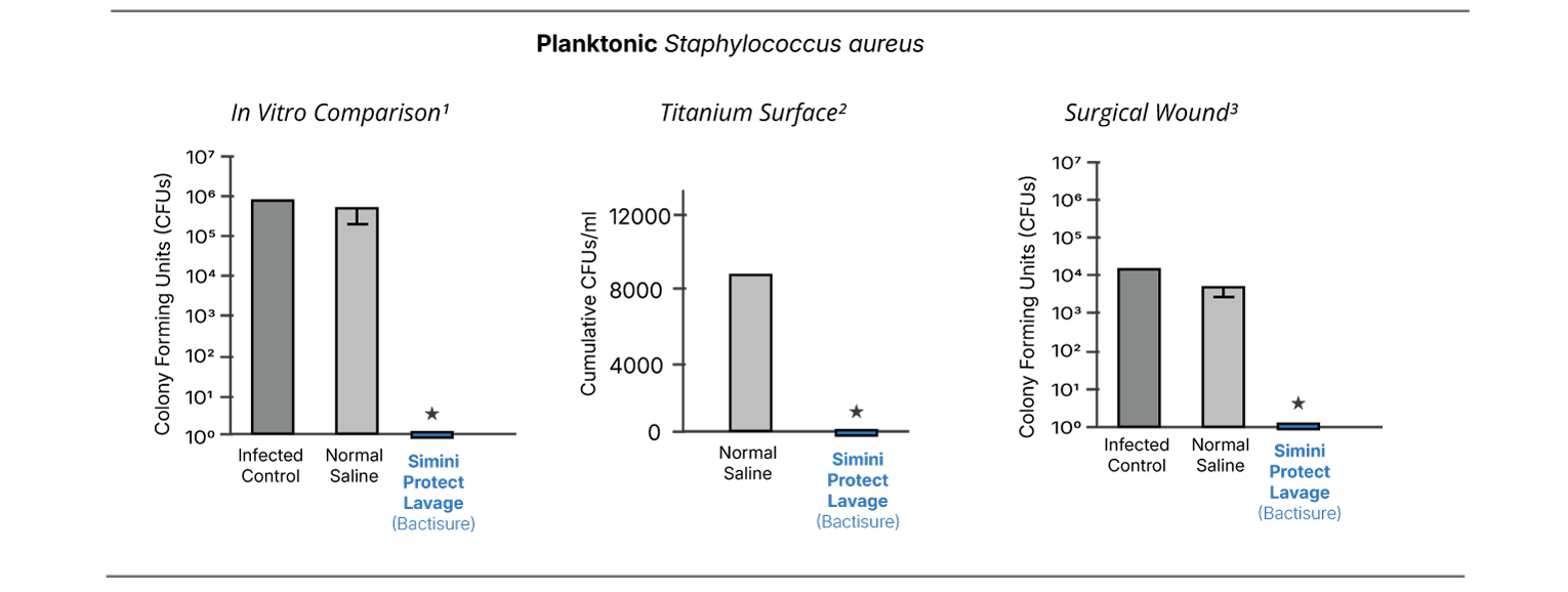 Across multiple independent evaluations, Simini Protect Lavage demonstrated lower recoverable bacterial
